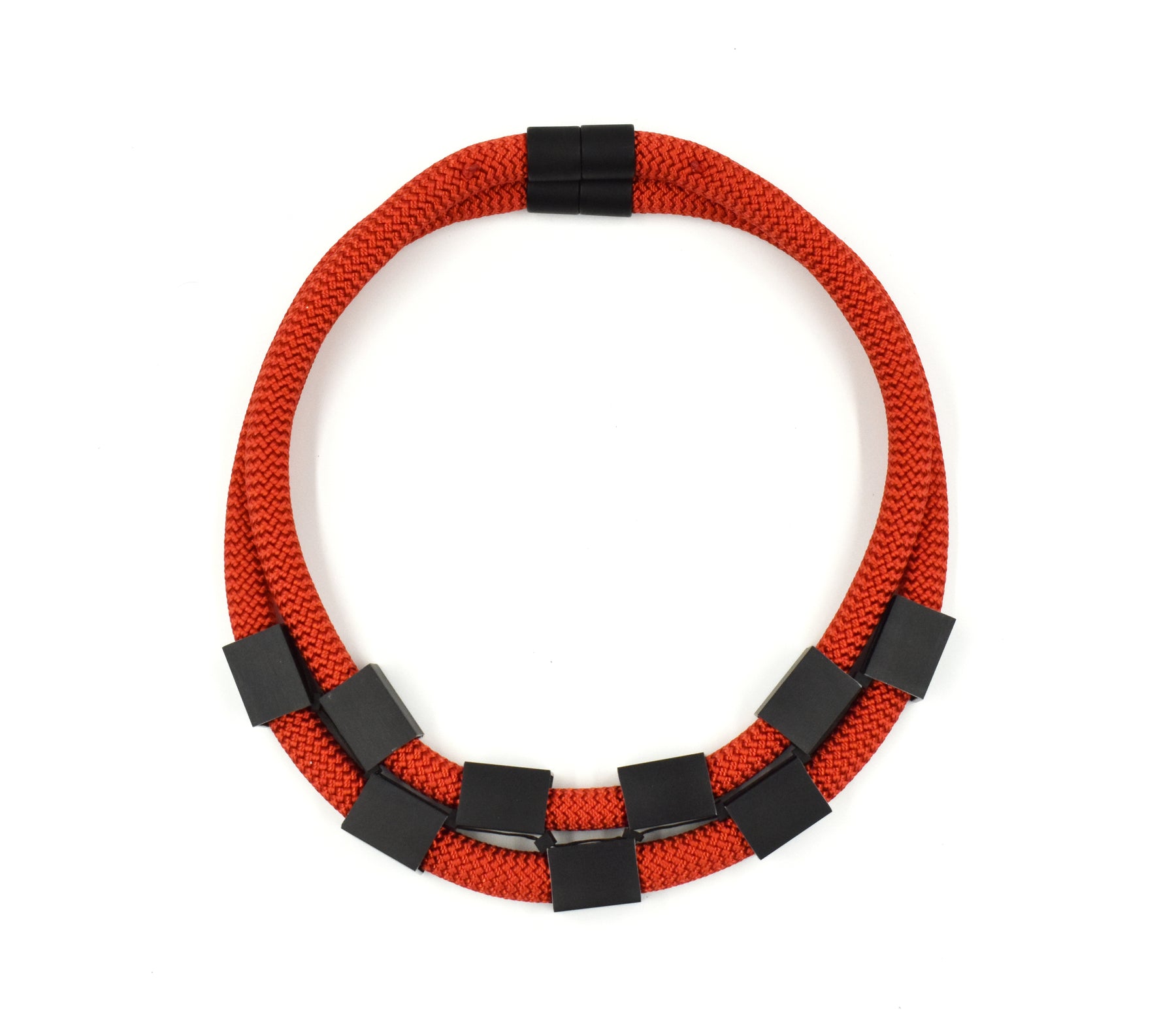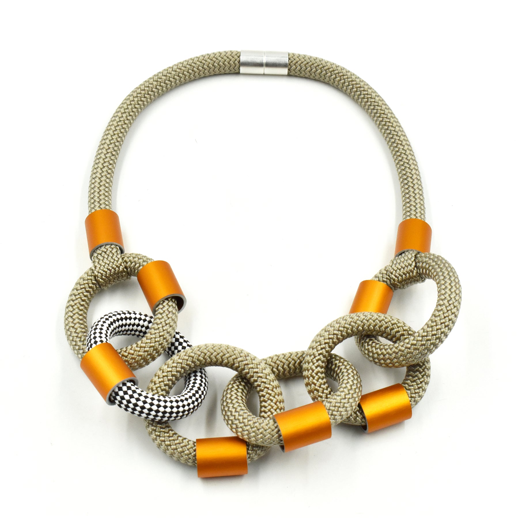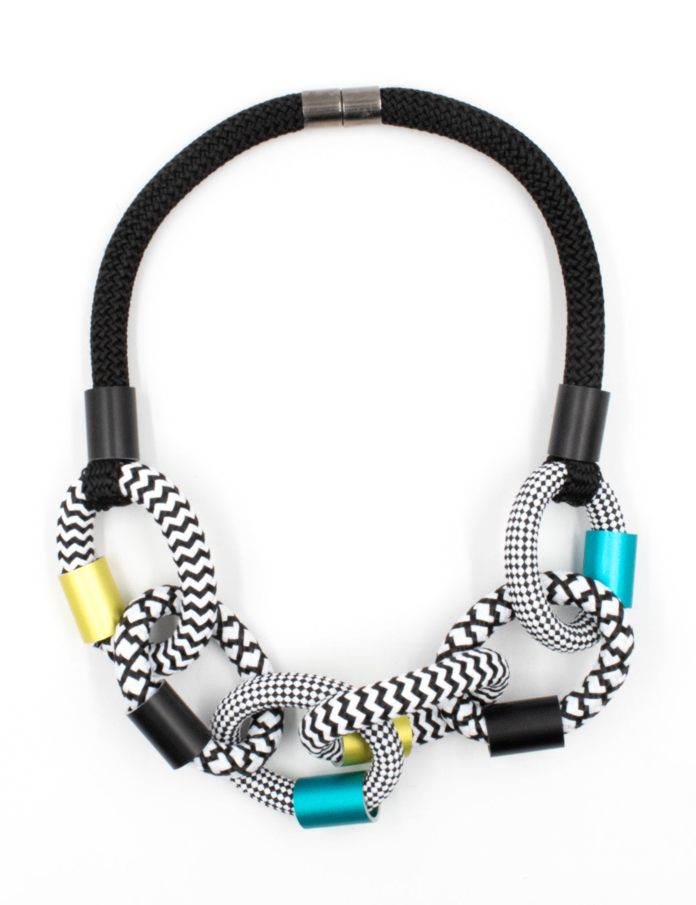 Elevate your look with the Beyond Simplicity Aluminum Object Short Necklace, where Bauhaus-inspired clean lines meet playful modern minimalism. Featuring sleek aluminum tube accents paired with durable climbing rope, this necklace adds a timeless yet fun touch to any outfit. The magnetic clasp not only makes it easy to wear but also adds a cool, contemporary twist.