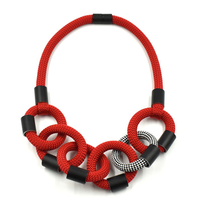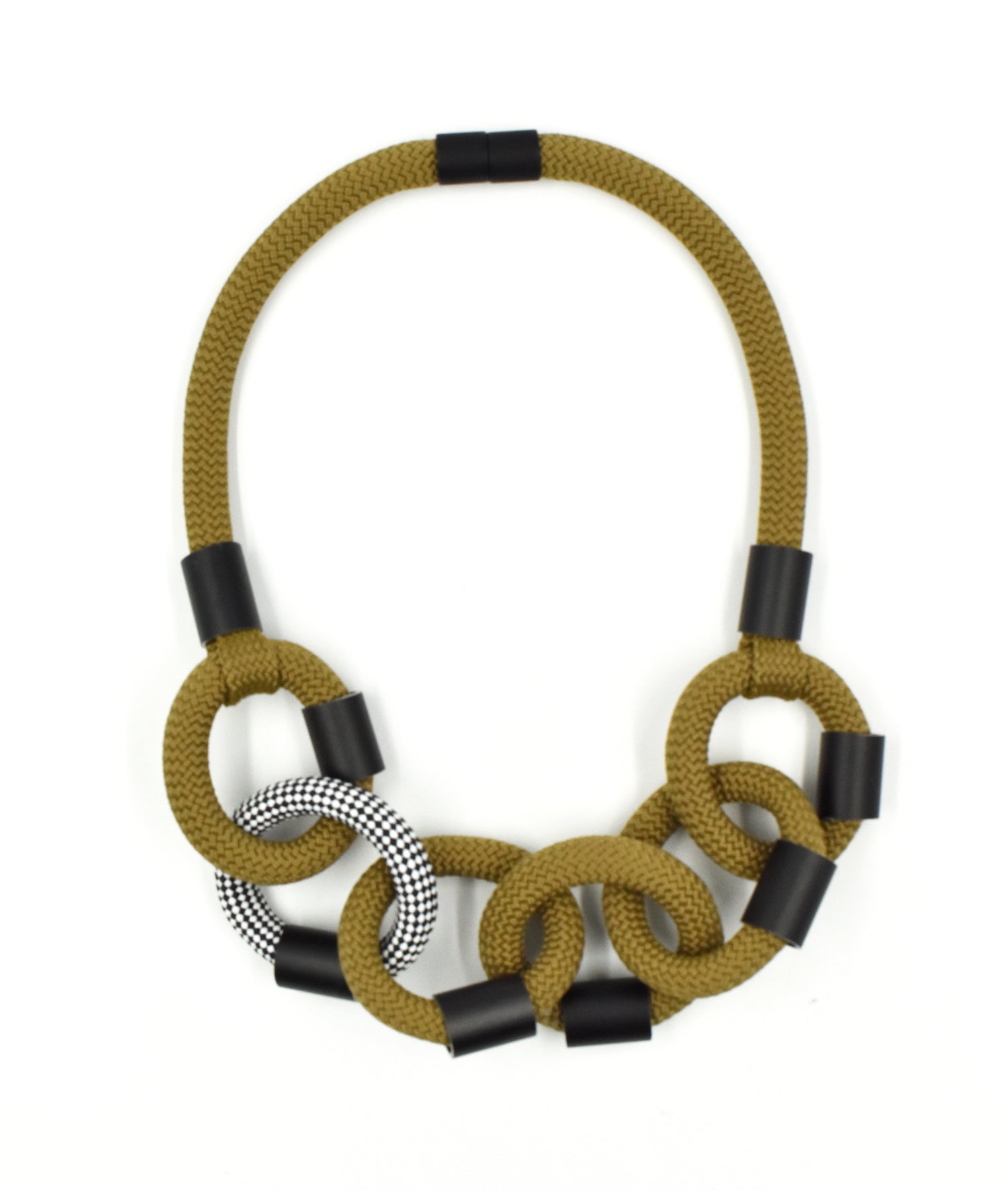 A gorgeous necklace made from thick cotton cord with six alternating colour loops in many different color options. This jewelry design meets the simplicity of a timeless charm.