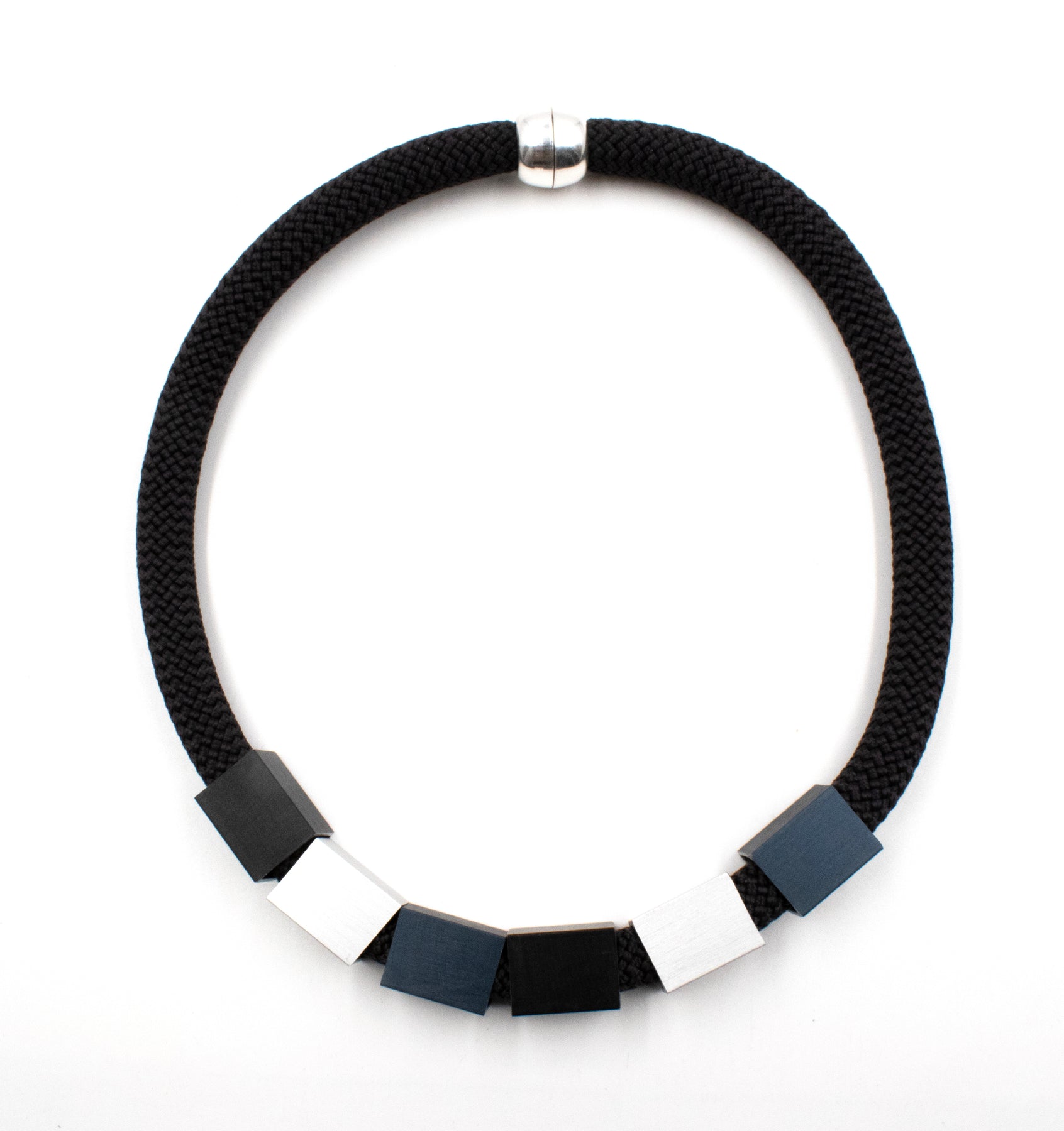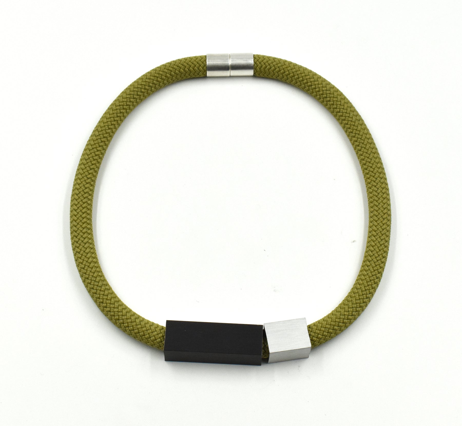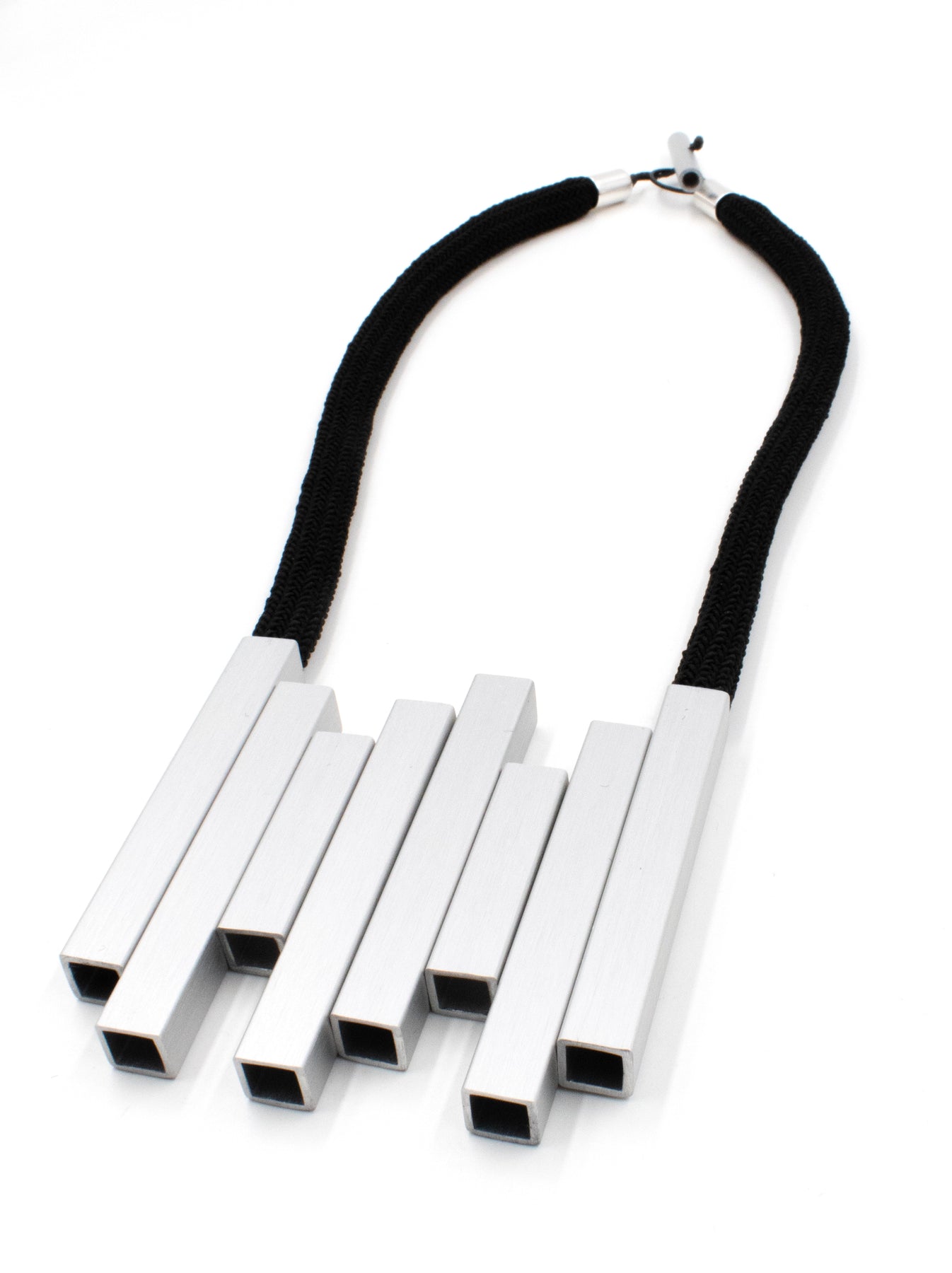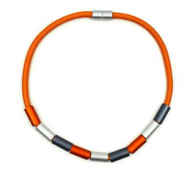 This sleek necklace features a cotton cord, two aluminium tubes, and a secure magnetic clasp, blending style with practicality. The strong yet lightweight cotton cord ensures comfortable wear all day long, while the aluminium tubes add a modern edge with their durability and corrosion resistance.