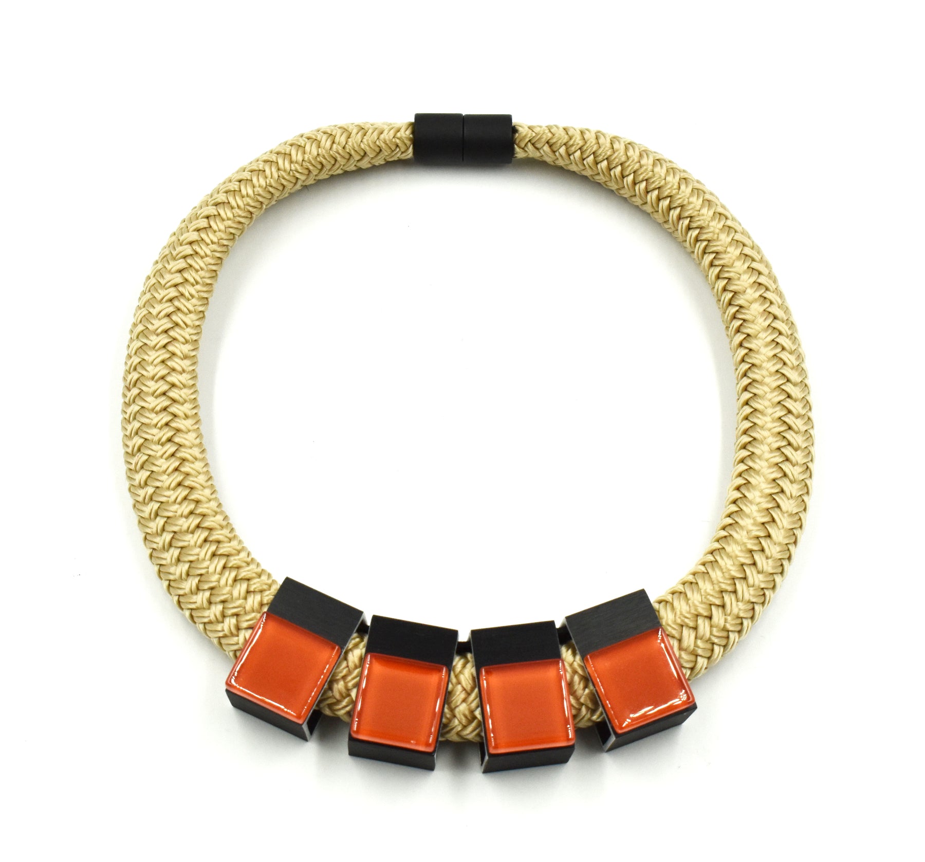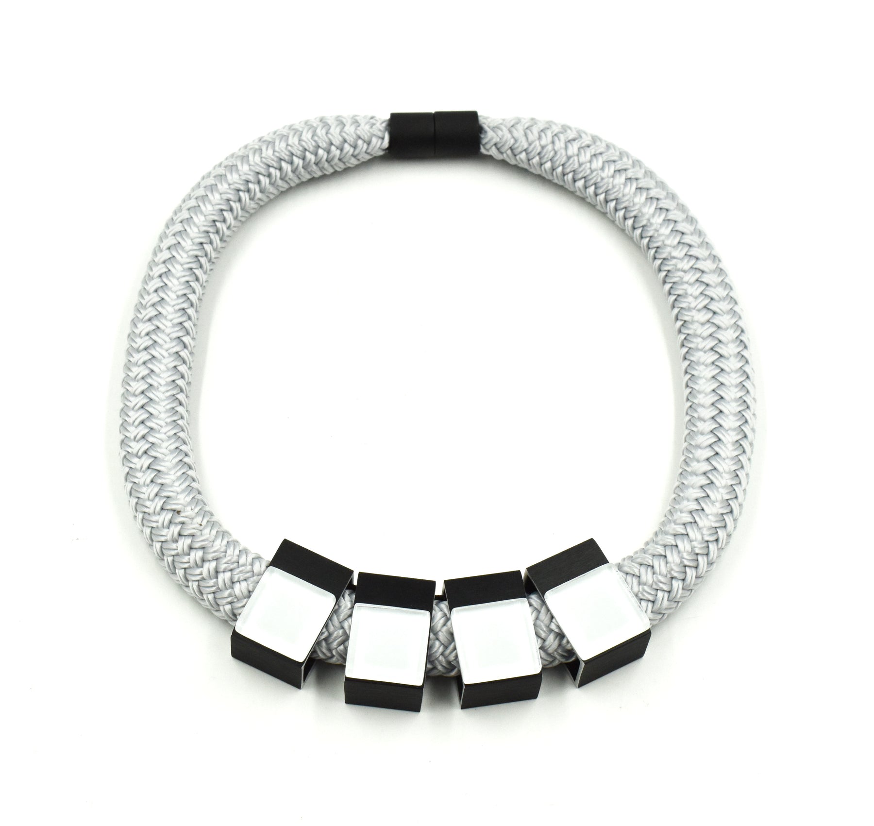 BEYOND SIMPLICITY AN. ALUMINIUM ACRYLIC ELEMENTS CORD NECKLACE K2355