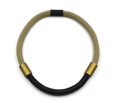 Add a modern edge to your wardrobe with the Beyond Simplicity cord necklace. This thoughtfully designed necklace combines soft cotton cord, sleek anodised aluminium tubes, and delicate metallic wire to create a unique, lightweight accessory that stands out. Its minimalist yet striking design makes it versatile enough to complement both casual and dressy outfits.