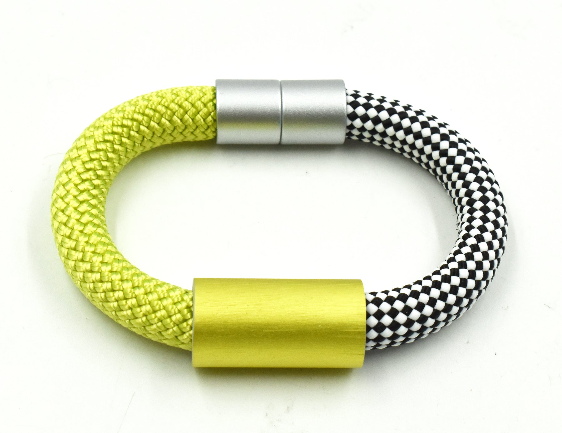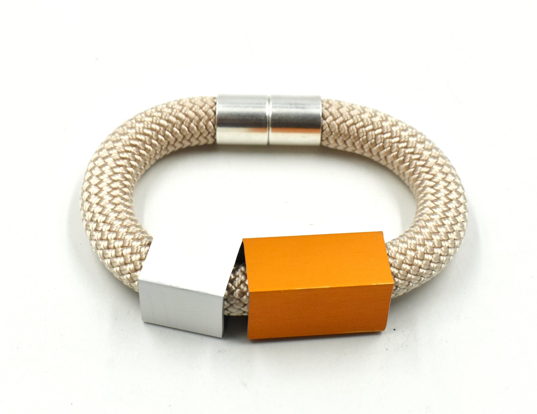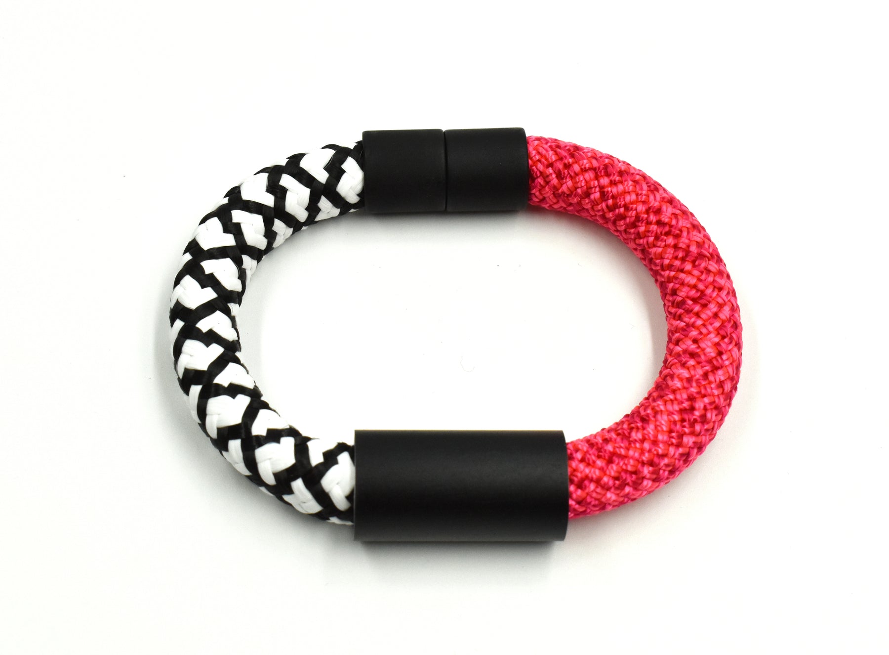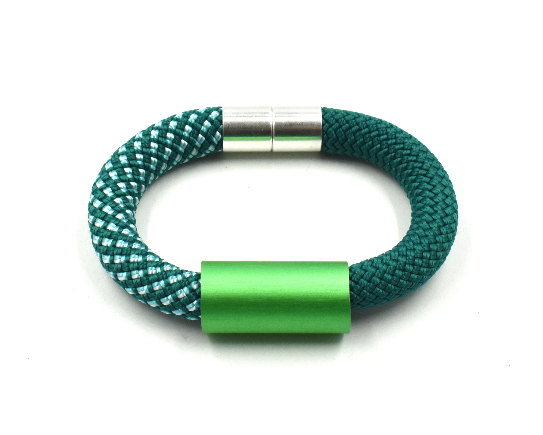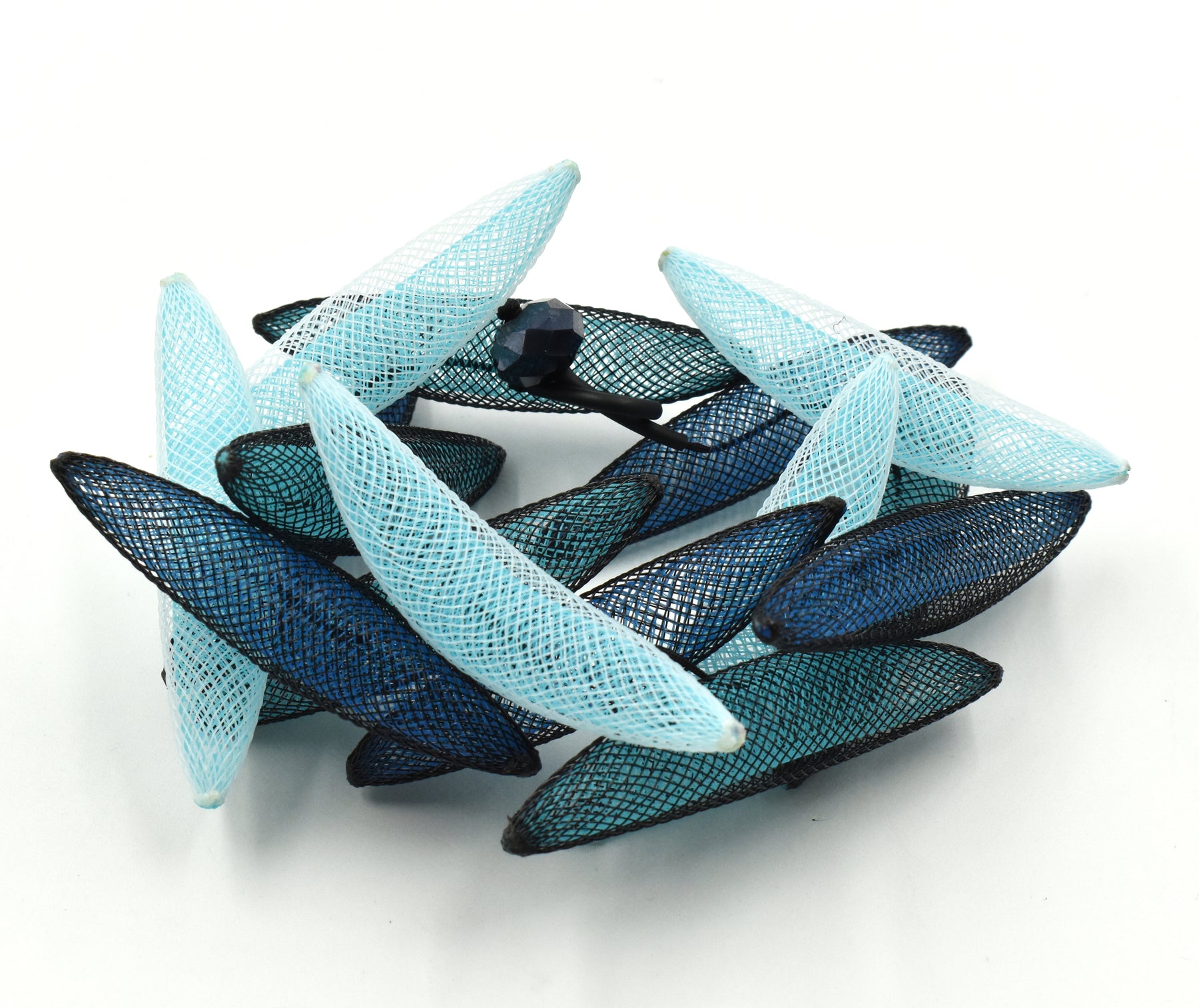 This bracelet is a striking example of contemporary jewelry design, combining lightness with sculptural presence. Crafted from fine mesh material, it creates a voluminous yet airy form that feels bold while remaining comfortable to wear. The semi-transparent texture allows light to pass through, giving the bracelet a dynamic, ever-changing appearance as it moves on the wrist.
