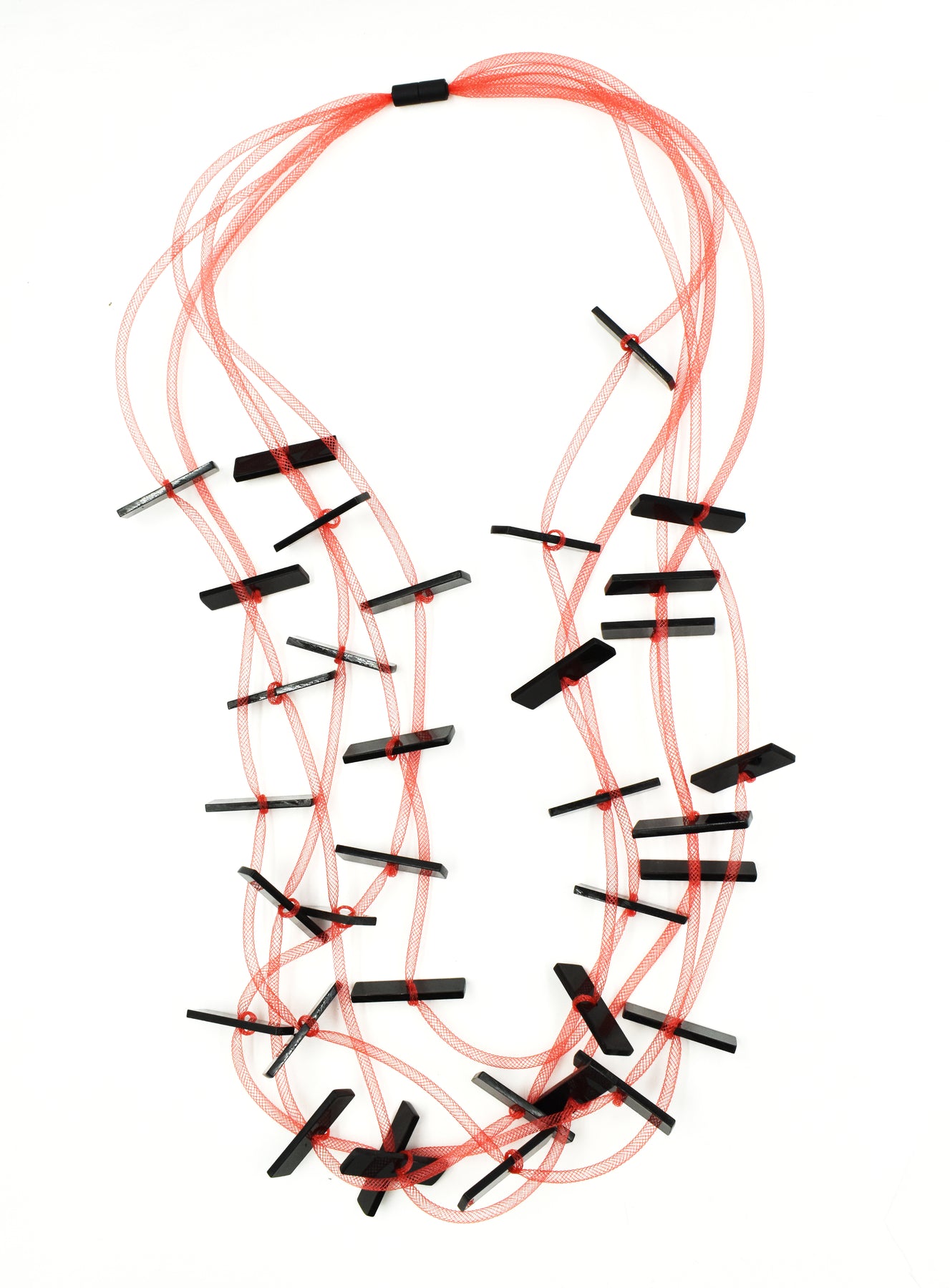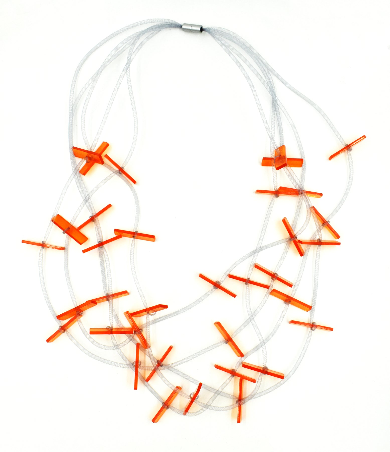 This playful long-length necklace from our new collection blends sleek plexiglass with flexible rubber for a lightweight, comfortable fit that moves with you all day. Its vibrant design adds a fun pop of personality to any outfit, making it perfect for mixing and matching with your favorite styles.