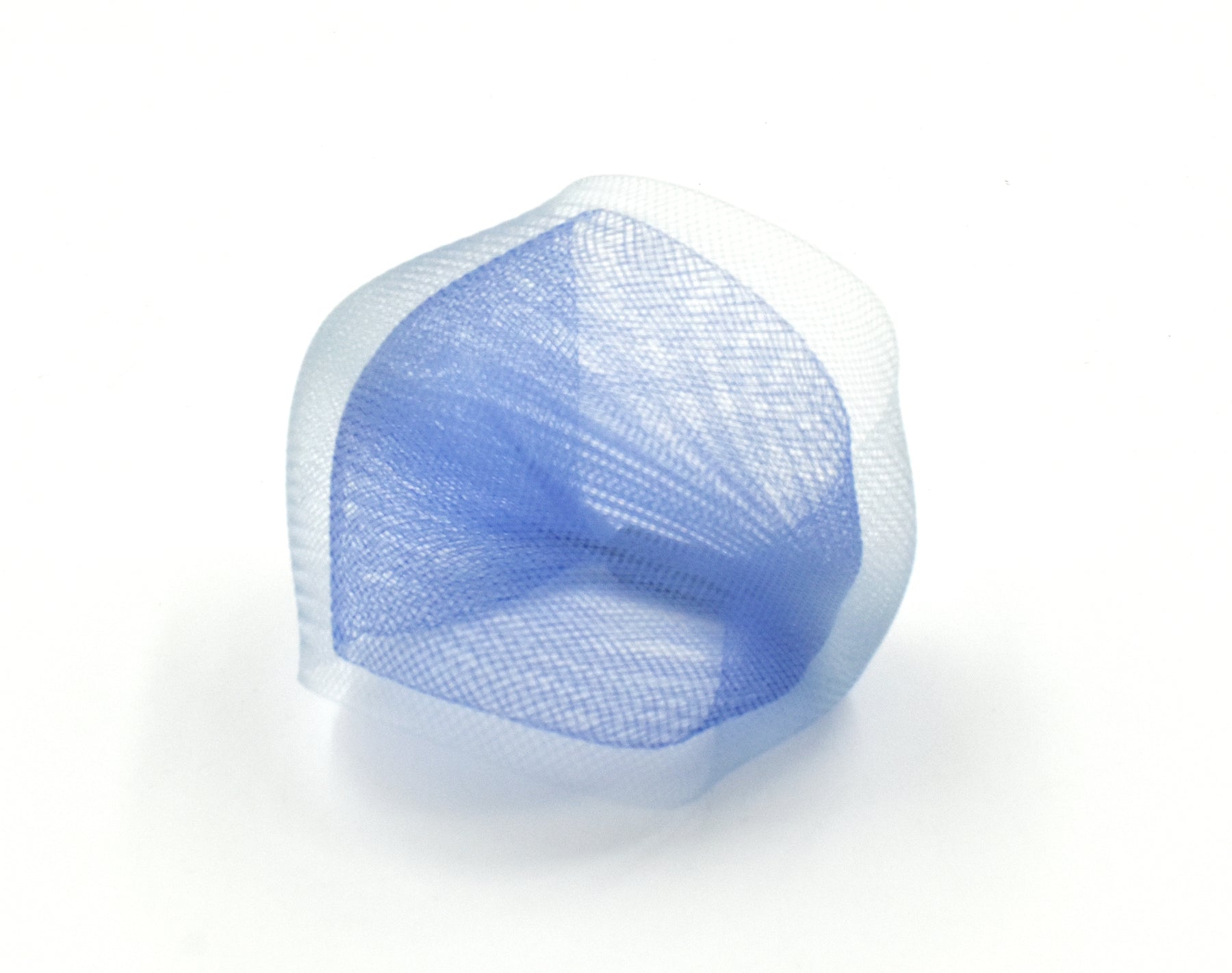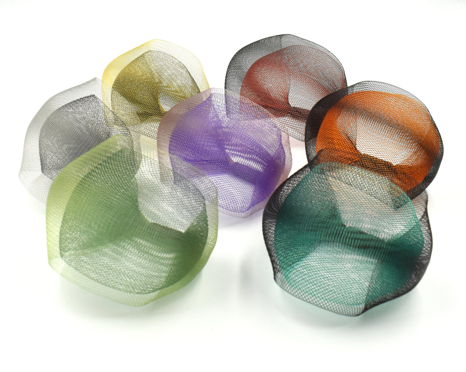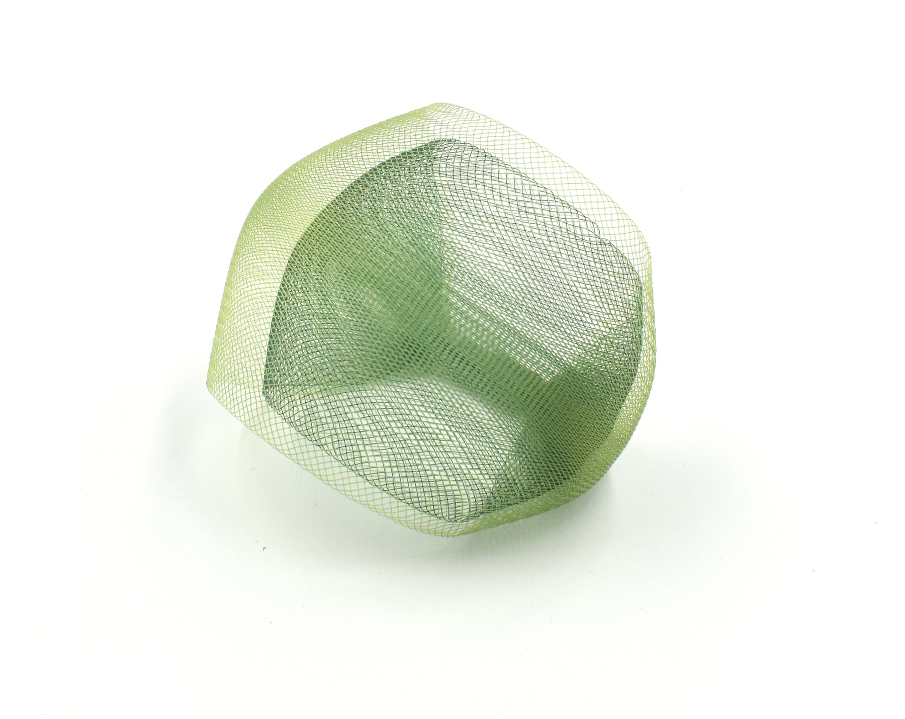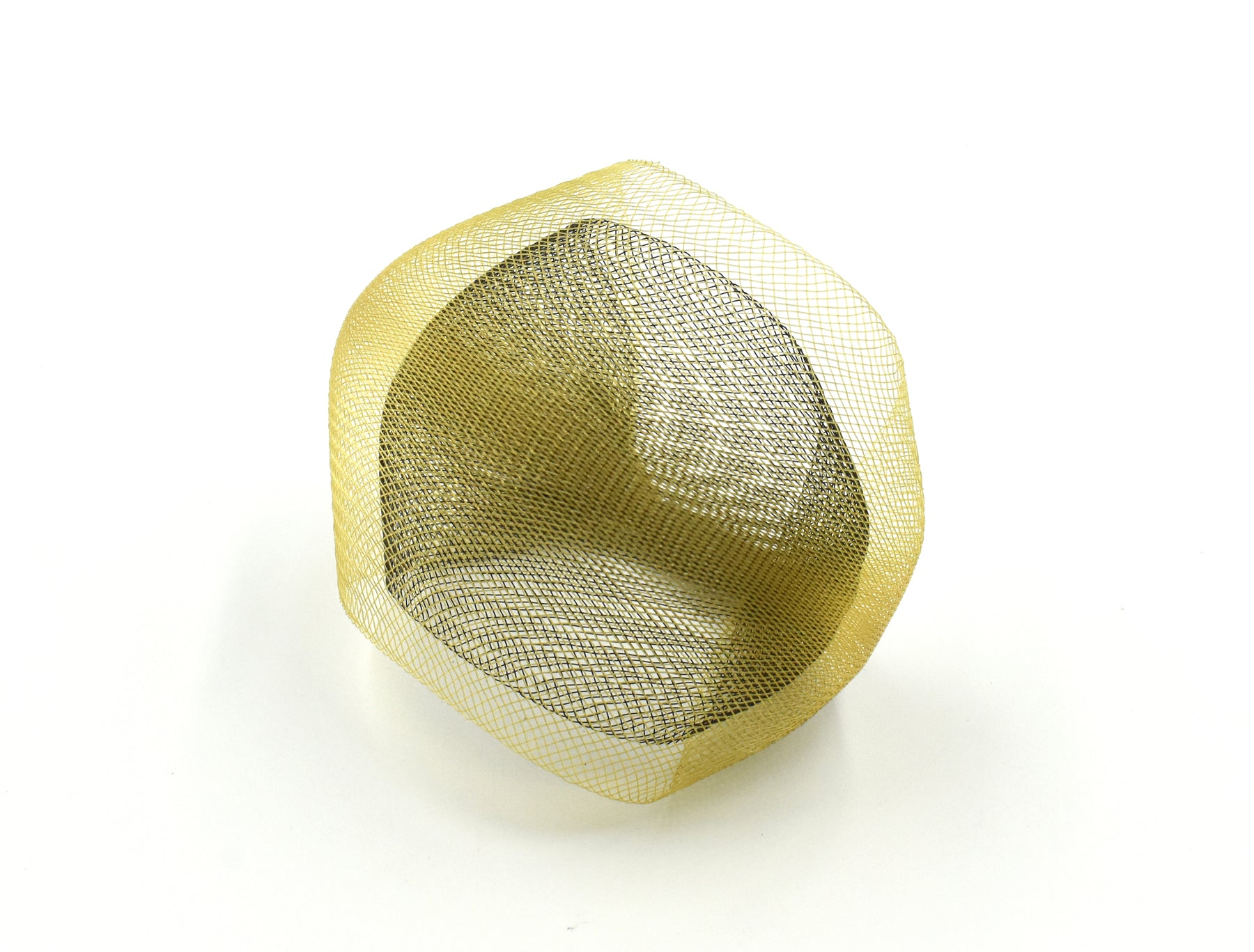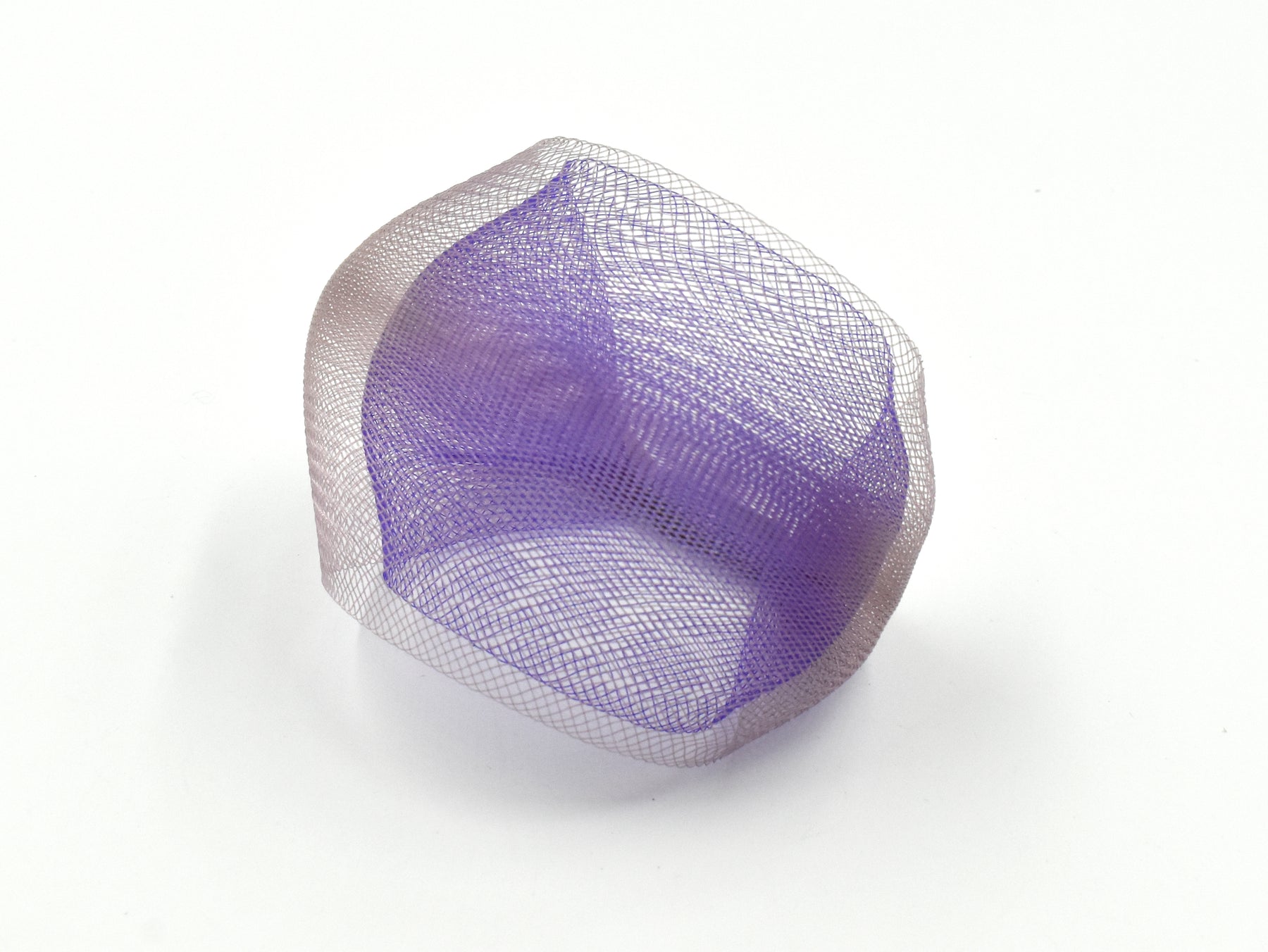 This bracelet is a striking example of contemporary jewelry design, combining lightness with sculptural presence. Crafted from fine mesh material, it creates a voluminous yet airy form that feels bold while remaining comfortable to wear. The semi-transparent texture allows light to pass through, giving the bracelet a dynamic, ever-changing appearance as it moves on the wrist.