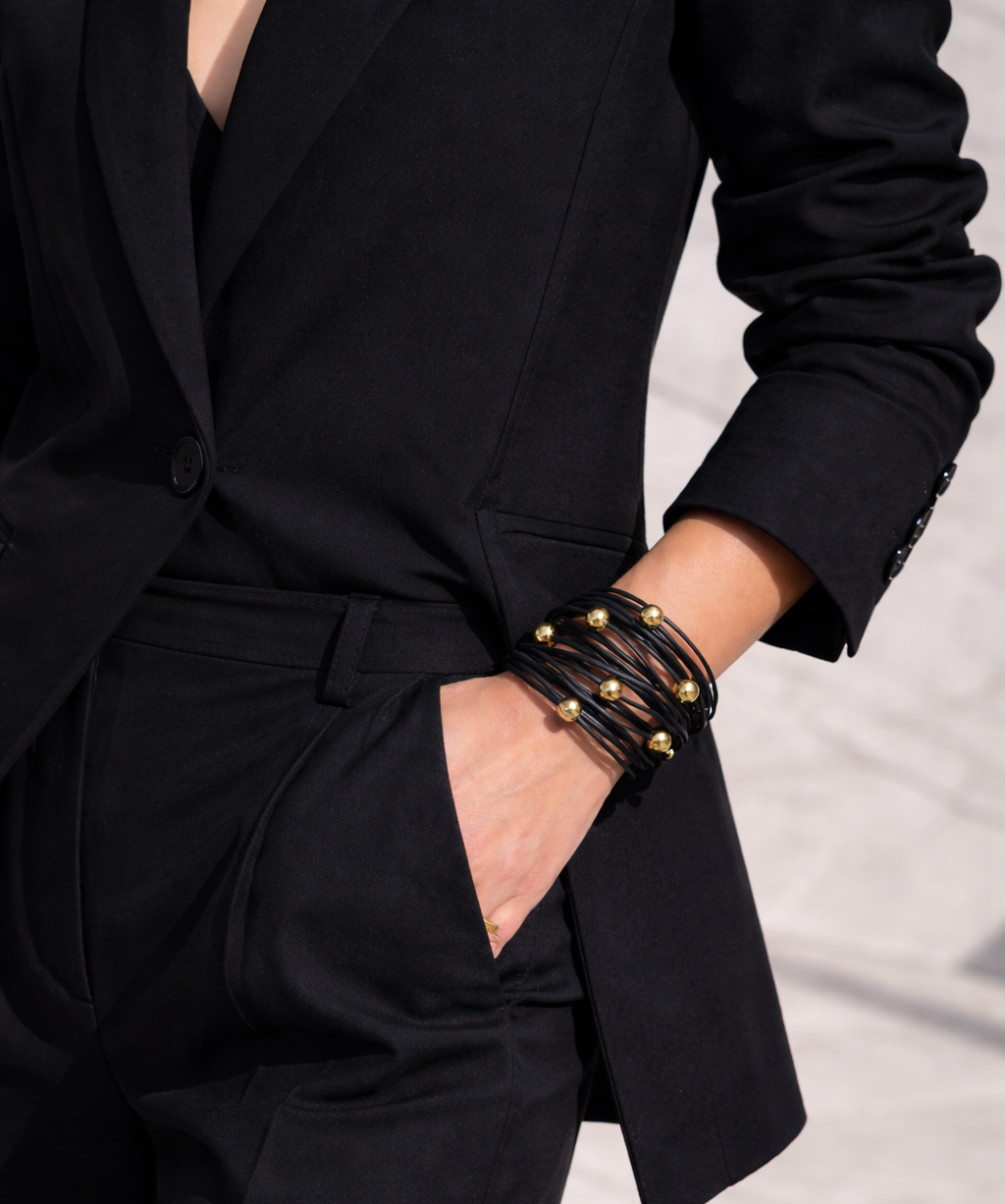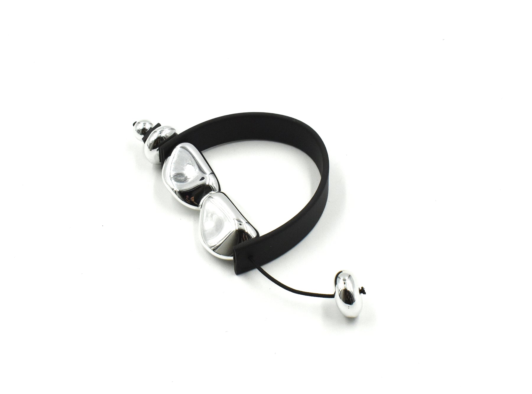 This bracelet is a striking example of contemporary jewelry design, combining lightness with sculptural presence. Crafted from fine mesh material, it creates a voluminous yet airy form that feels bold while remaining comfortable to wear. The semi-transparent texture allows light to pass through, giving the bracelet a dynamic, ever-changing appearance as it moves on the wrist.