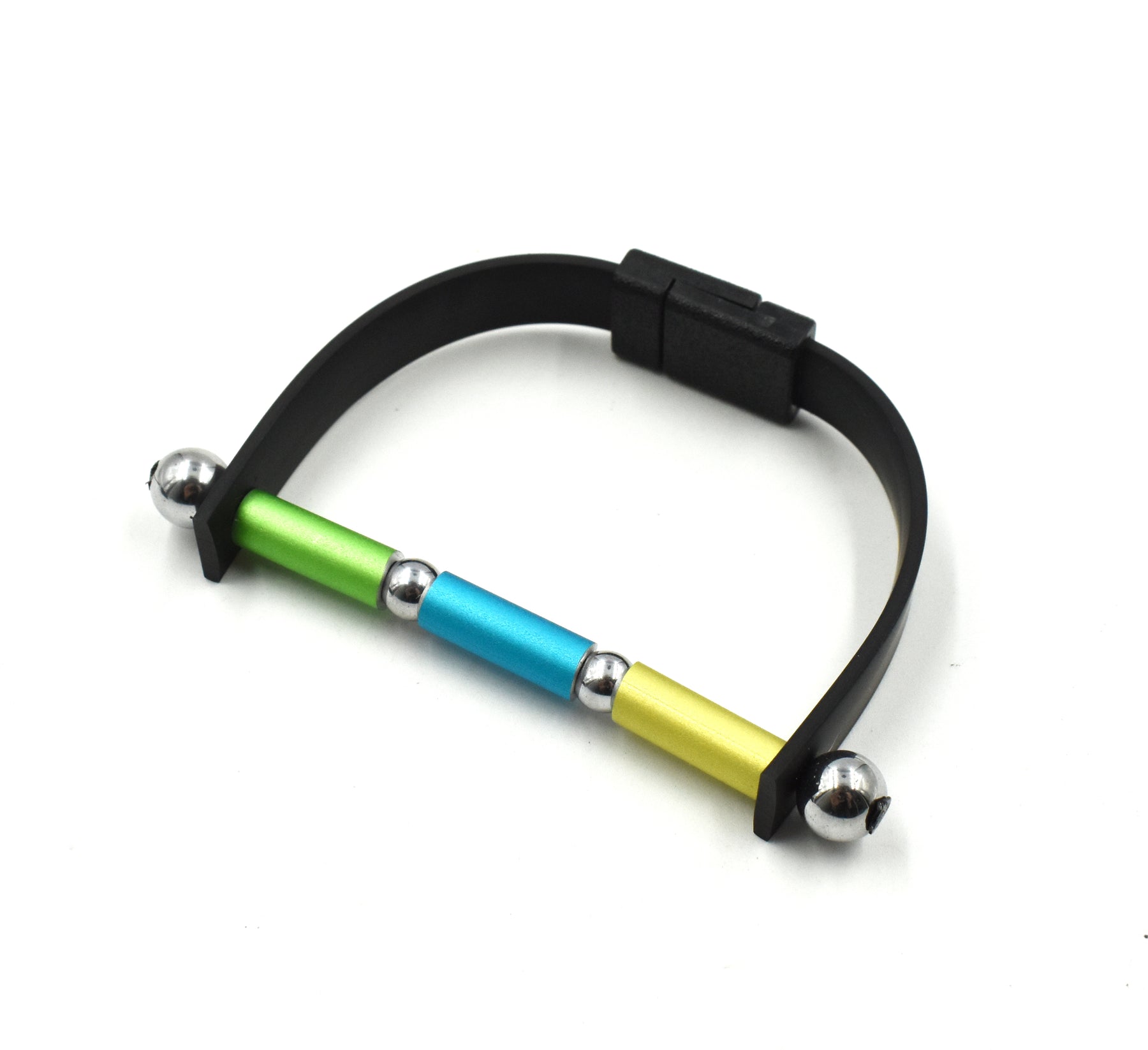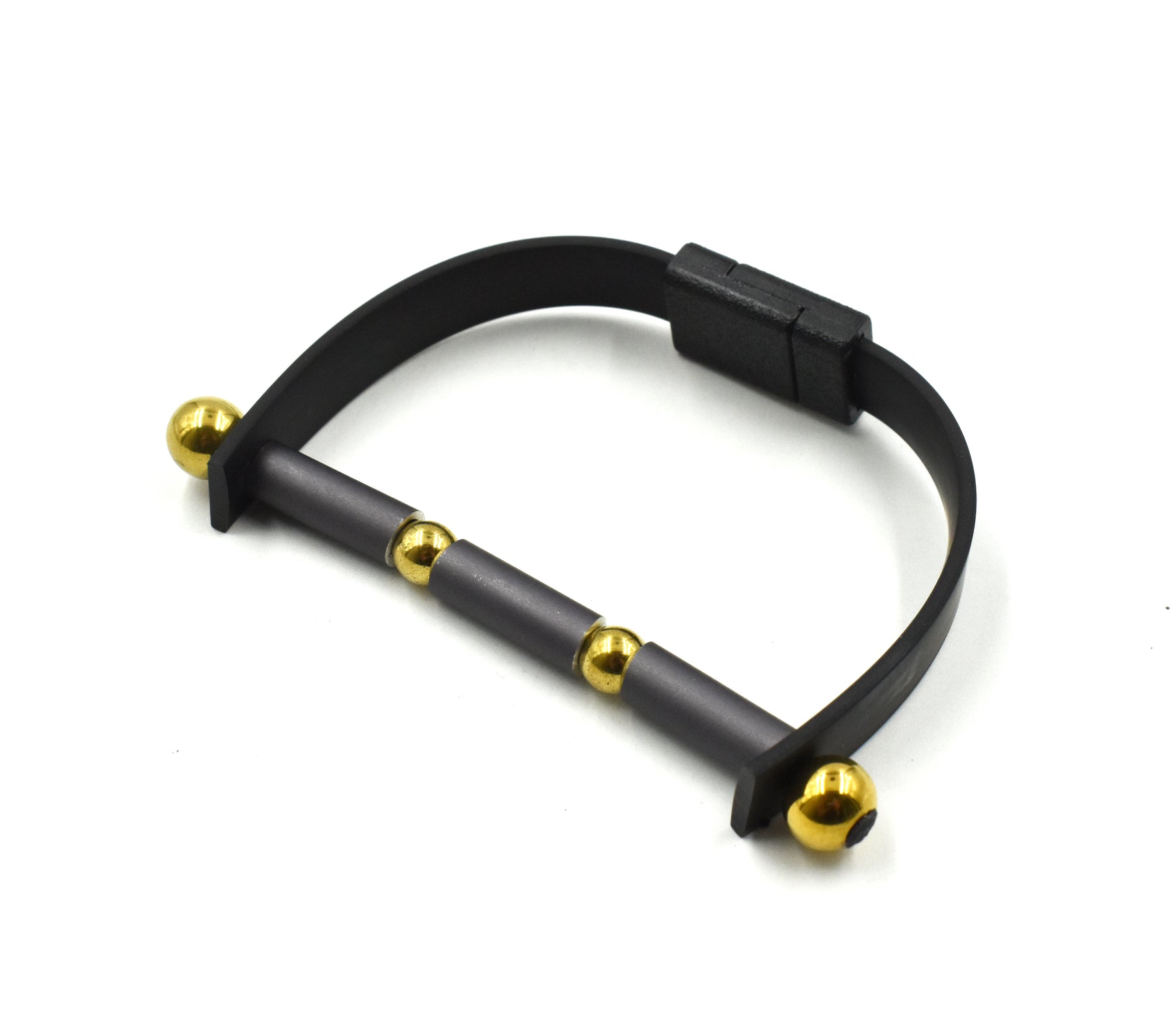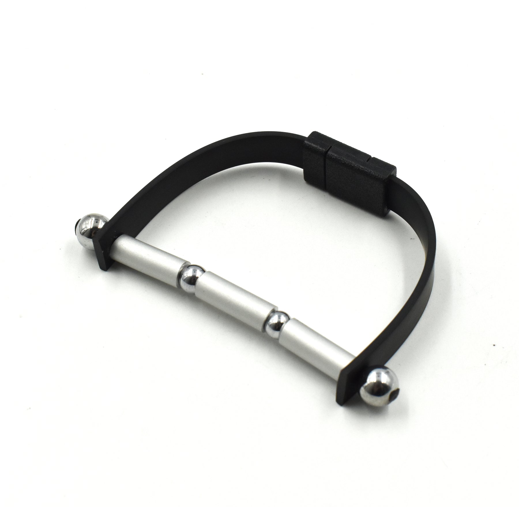 VISIONS IN NOIR AN. ALUMINIUM HEMATITE ELEMENTS RUBBER BRACELET B1938