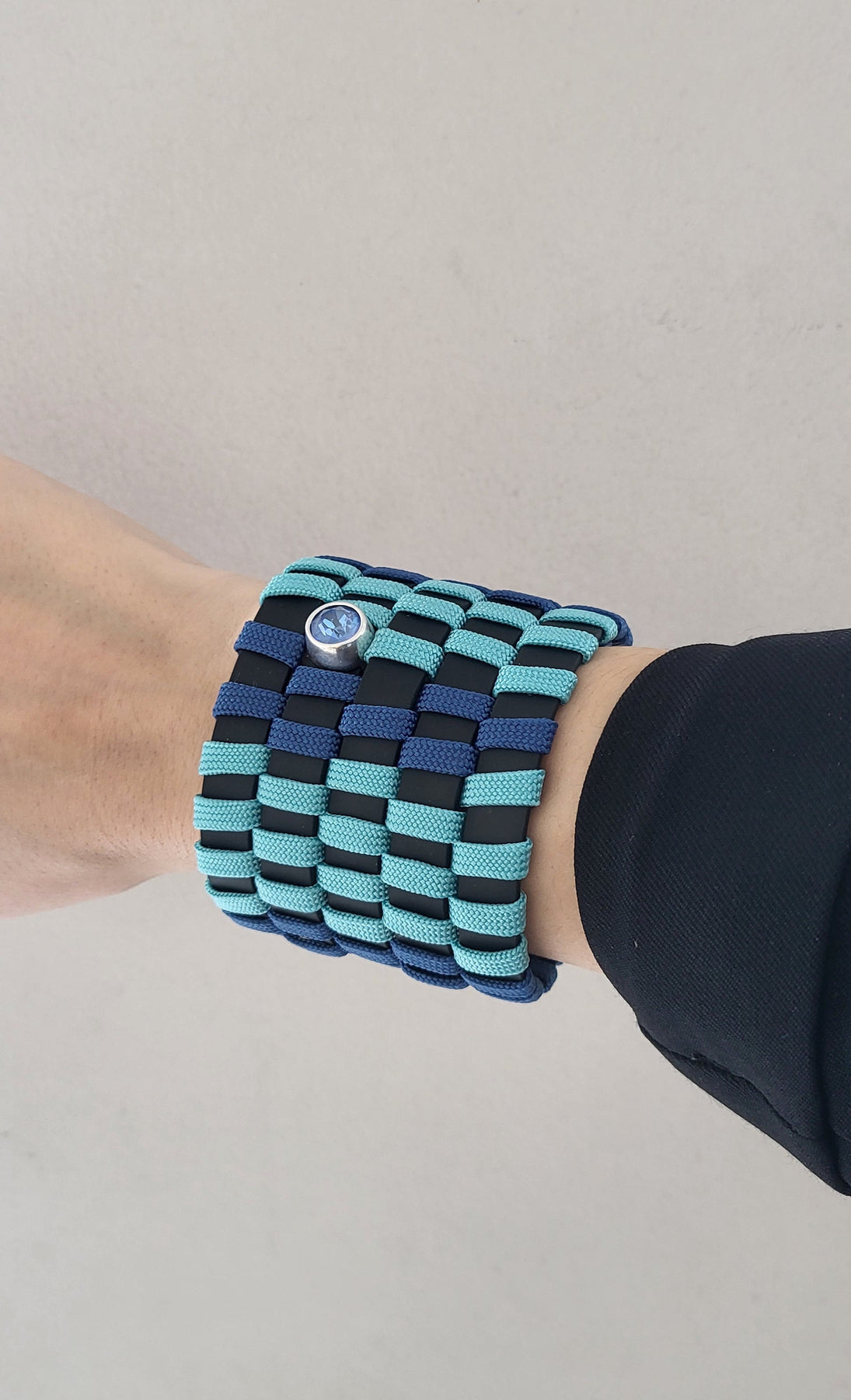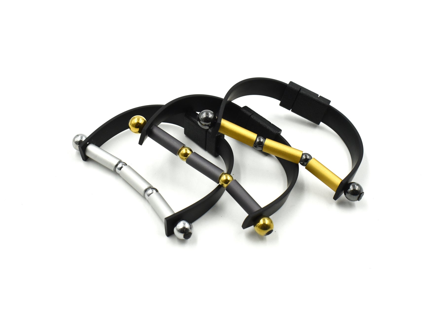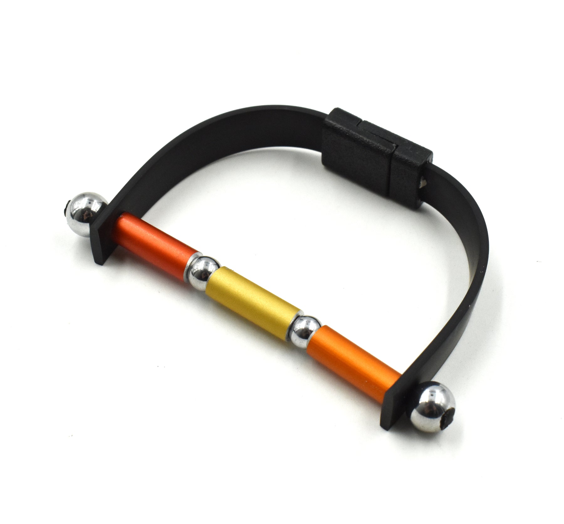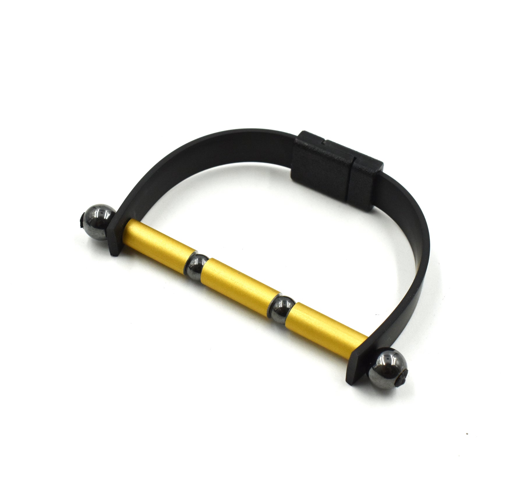 VISIONS IN NOIR AN. ALUMINIUM HEMATITE ELEMENTS RUBBER BRACELET B1938