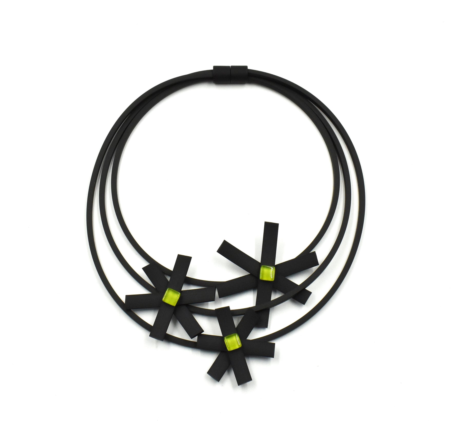 VISIONS IN NOIR ACRYLIC DETAILS RUBBER NECKLACE K2435