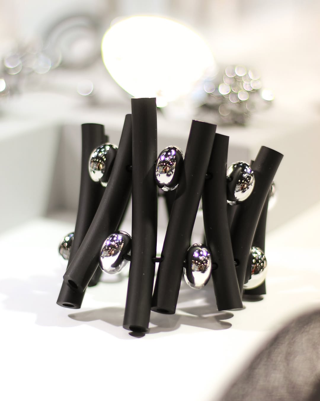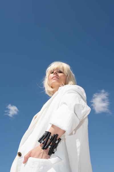 VISIONS IN NOIR ACRYLIC ELEMENTS RUBBER BRACELET B1923