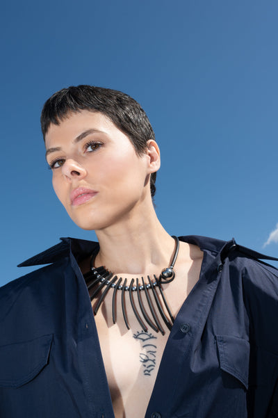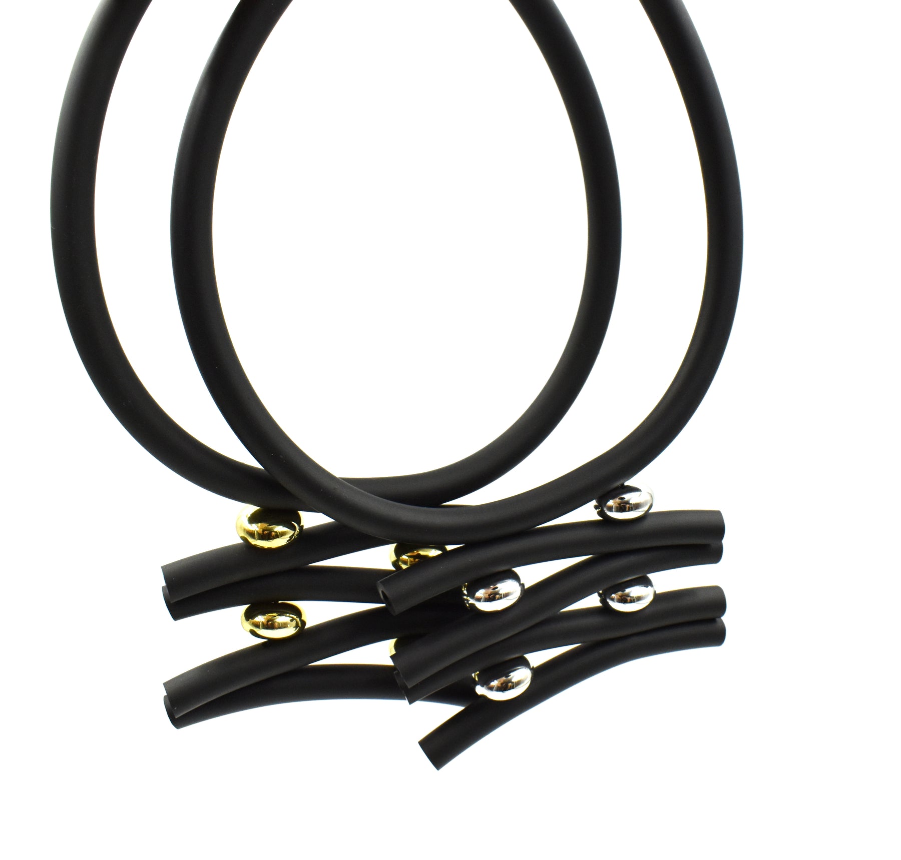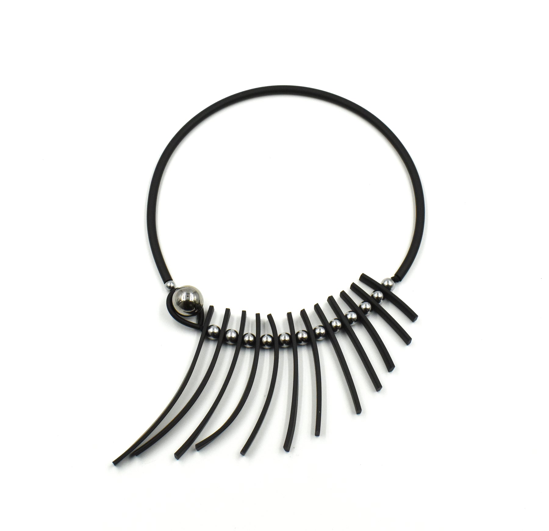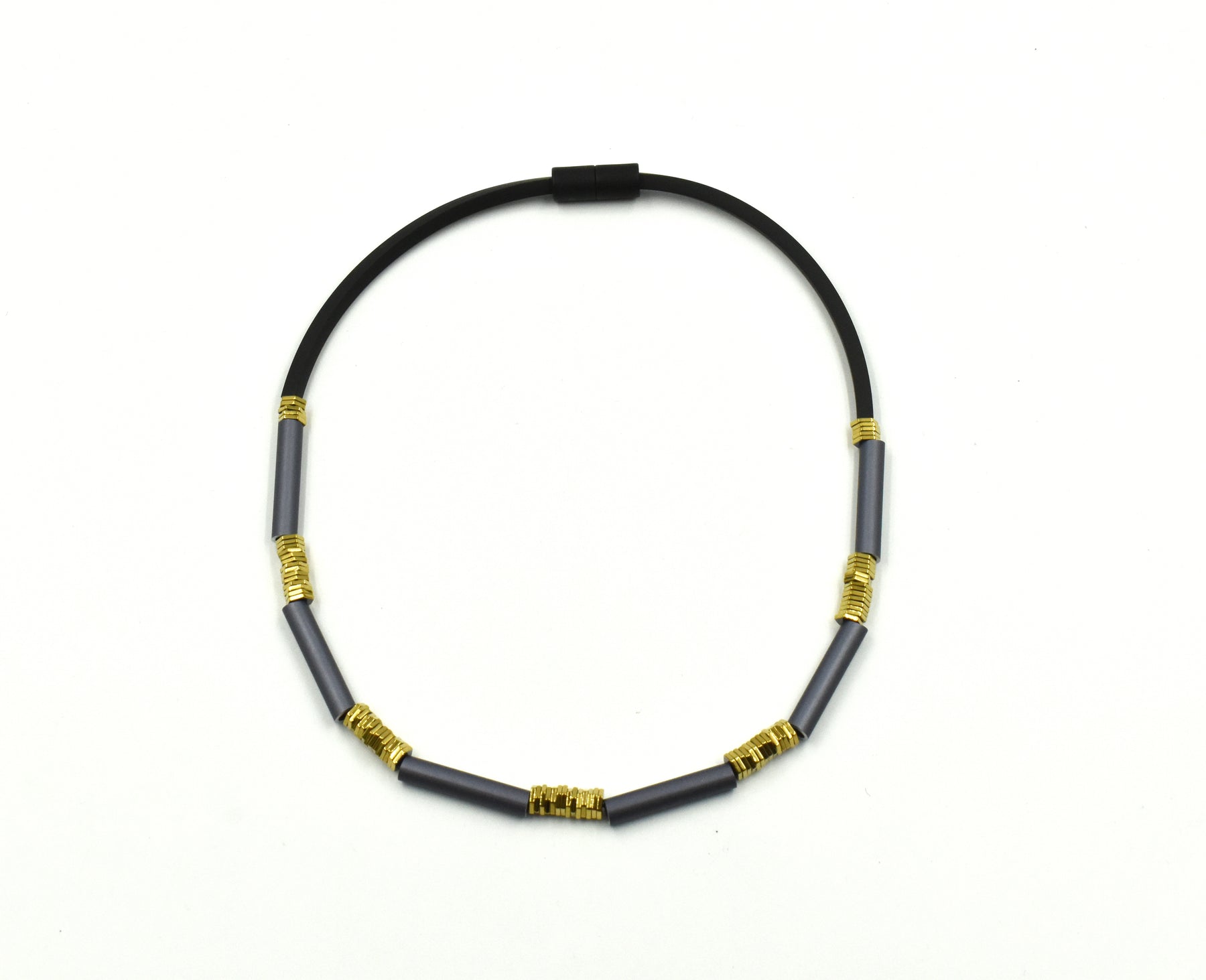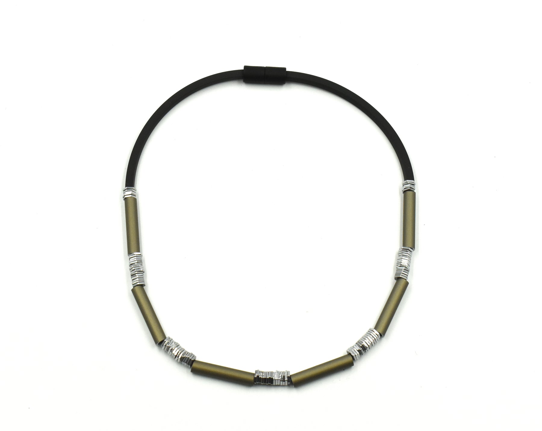 VISIONS IN NOIR HEMATITE ELEMENTS RUBBER NECKLACE K2440