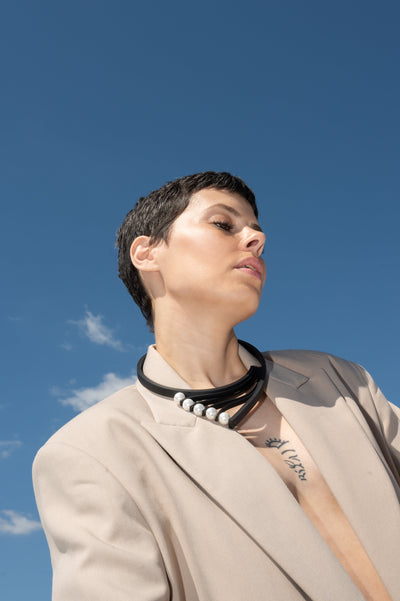 VISIONS IN NOIR ACRYLIC DETAILS RUBBER NECKLACE K2437