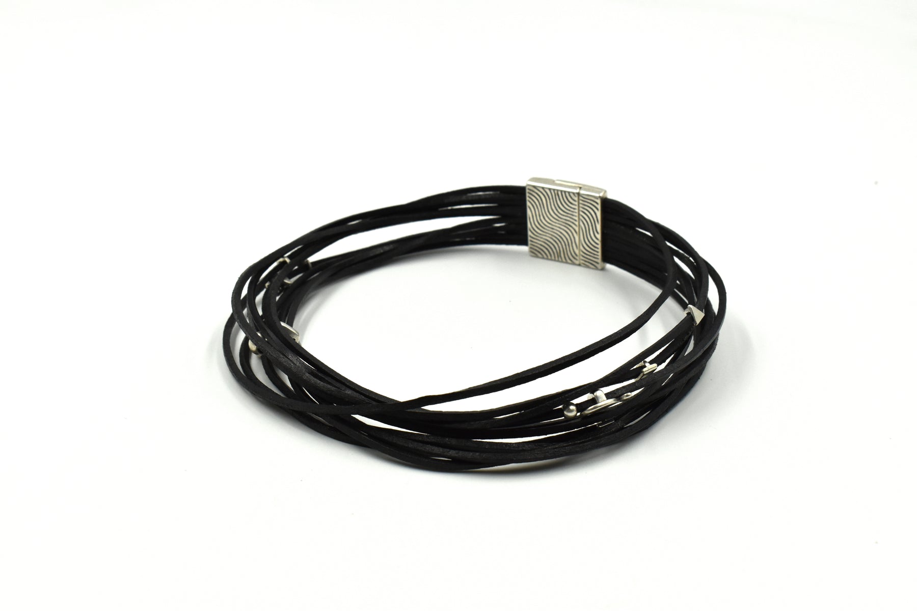 VISIONS IN NOIR SILVER PLATED DETAILS LEATHER CORD BRACELET-CHOCKER B1920